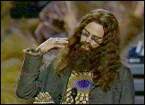 Fans were hoping he would indeed attend, especially if he won for "The Truman Show." Also, Carreyholics have been intensely curious as to what Jim Carrey looks like in costume for "Irene." As a few pictures have hit the Web, fans wanted to get a better look at the currently, often talked about "buzz cut" he sports.Carrey effectively foiled fans' plans when he came on stage wearing a long-hair wig, long beard and moustache and tinted glasses.